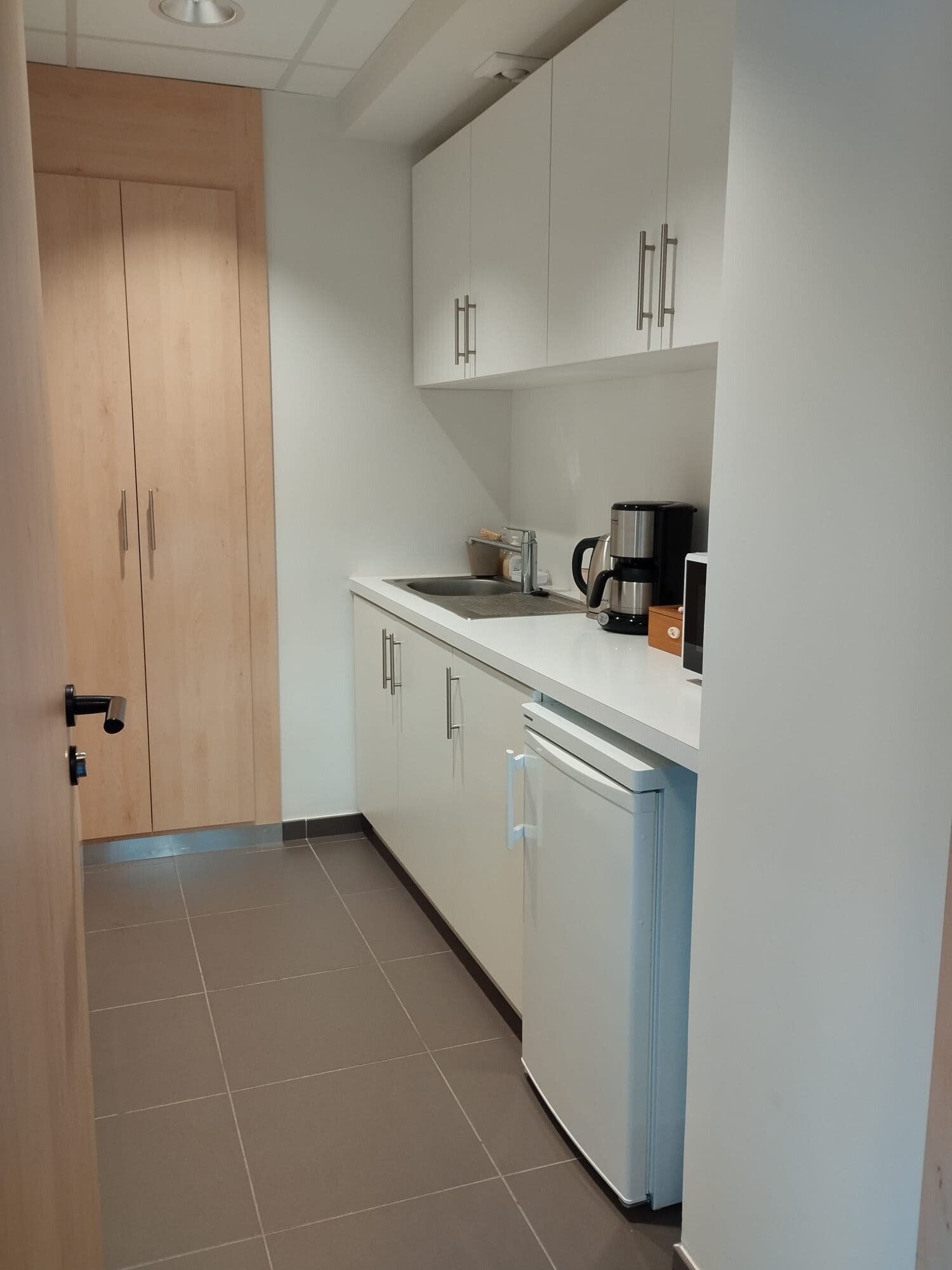 Une petite cuisine vous permet de déjeuner sur place. Elle est équipée d'un réfrigérateur, d'un four micro-ondes, d'une bouilloire, d'une cafetière.